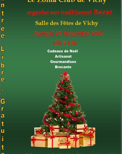 Vente de gourmandises, décorations de Noël, artisanat et brocante au profit de notre association le Zonta Club de vichy qui oeuvre en faveur de la défense du droit des femmes