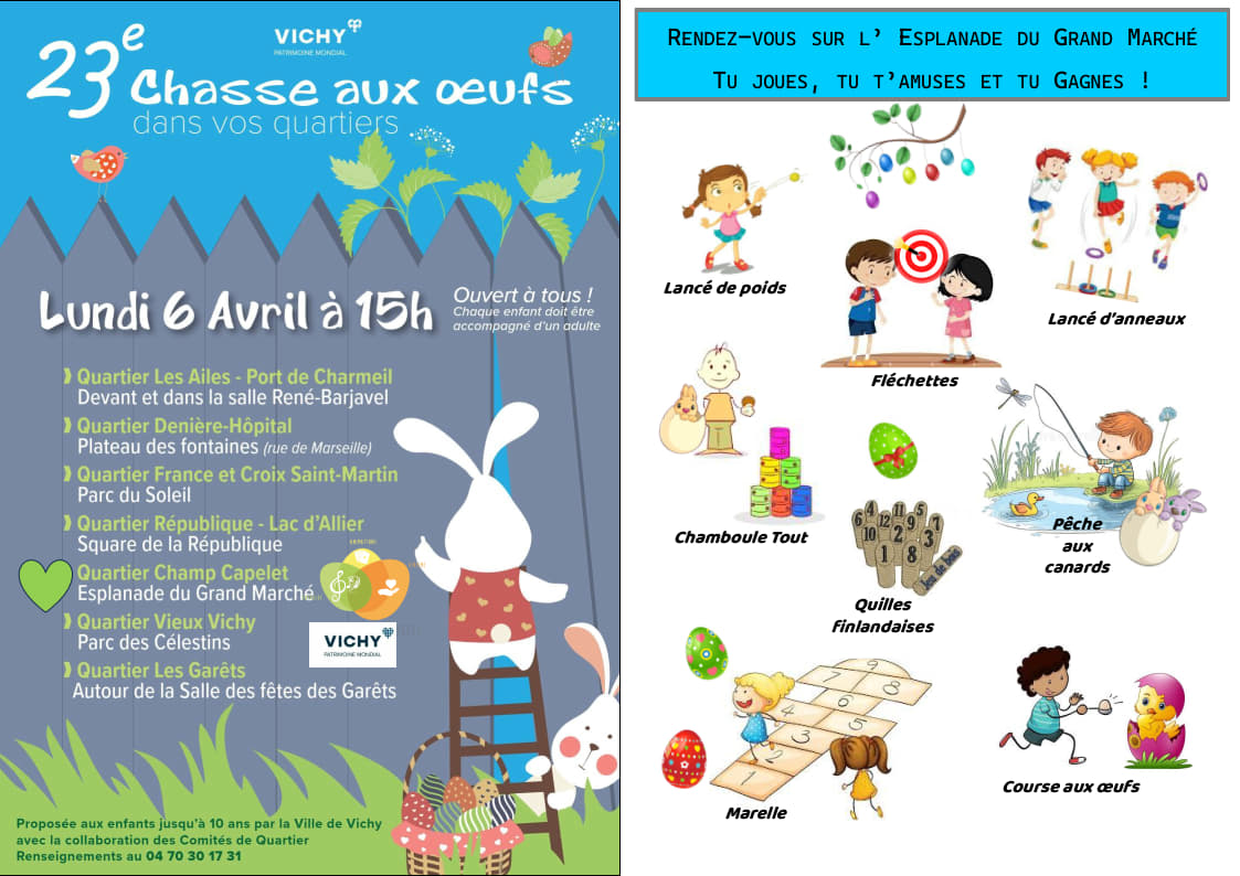 23ème chasse aux dans vos quartier …. Lundi 6 avril 2026 à partir de 15 heures, venez jouer et gagner des oeufs en chocolat ! Rendez-vous Esplanade du Grand Marché.