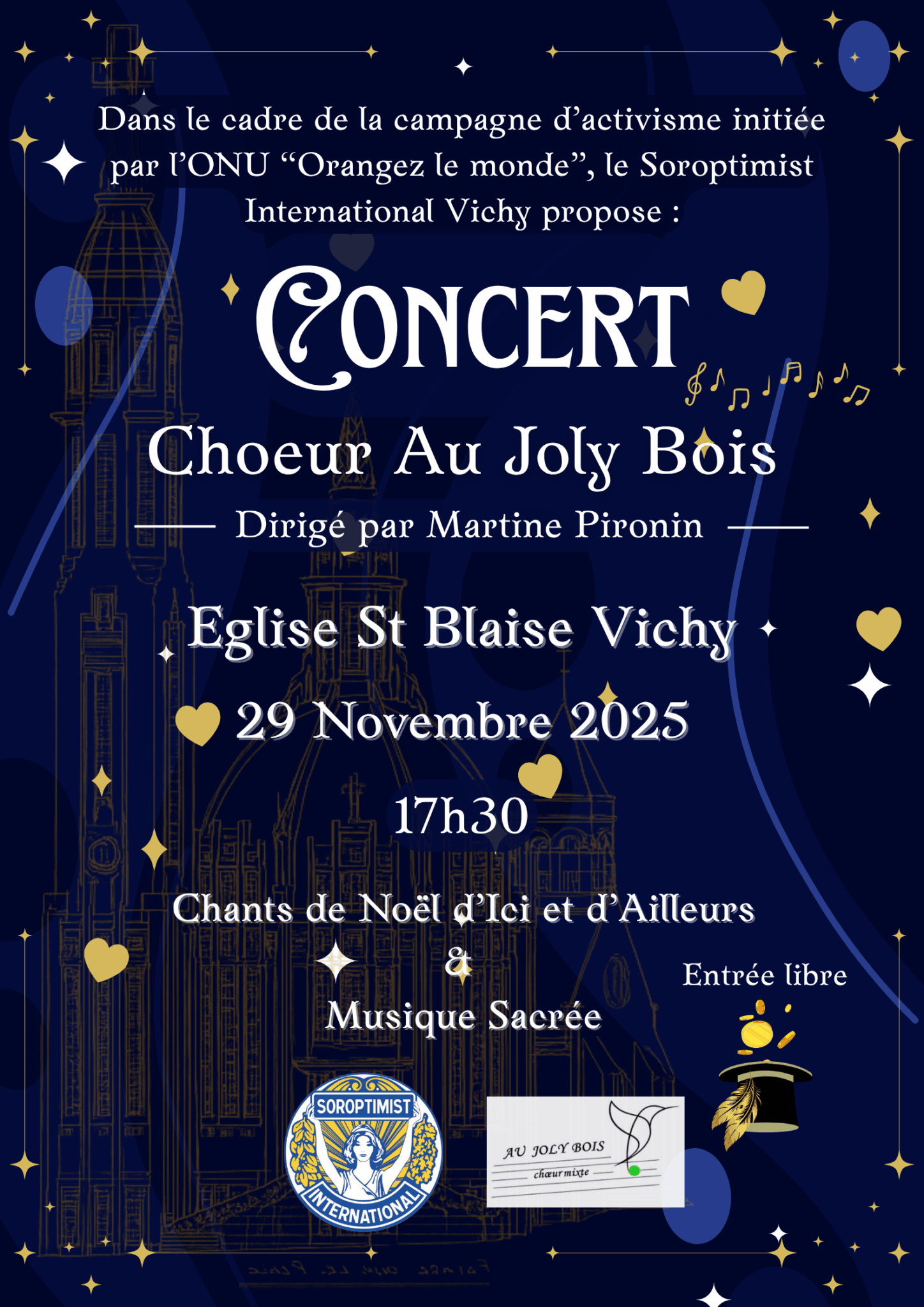 Concert Chants de Noël – Dans le cadre des 16 jours d’activisme « Orangez le Monde » – Soroptimist International Vichy – gratuit – participation au chapeau.