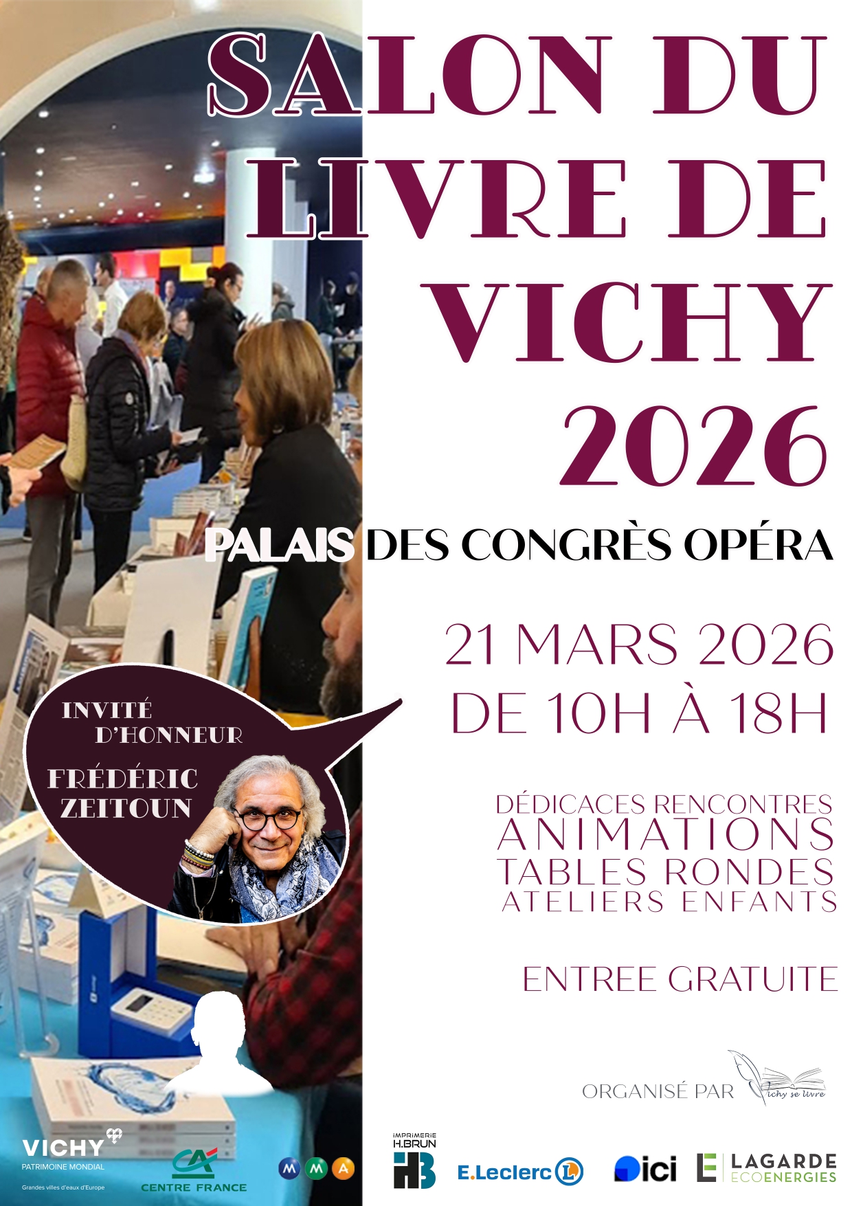 Cette année, la Ville de Vichy accueillera son 16ème Salon du Livre, le 21 mars 2026 dans un lieu prestigieux, au Palais des congrès-Opéra.