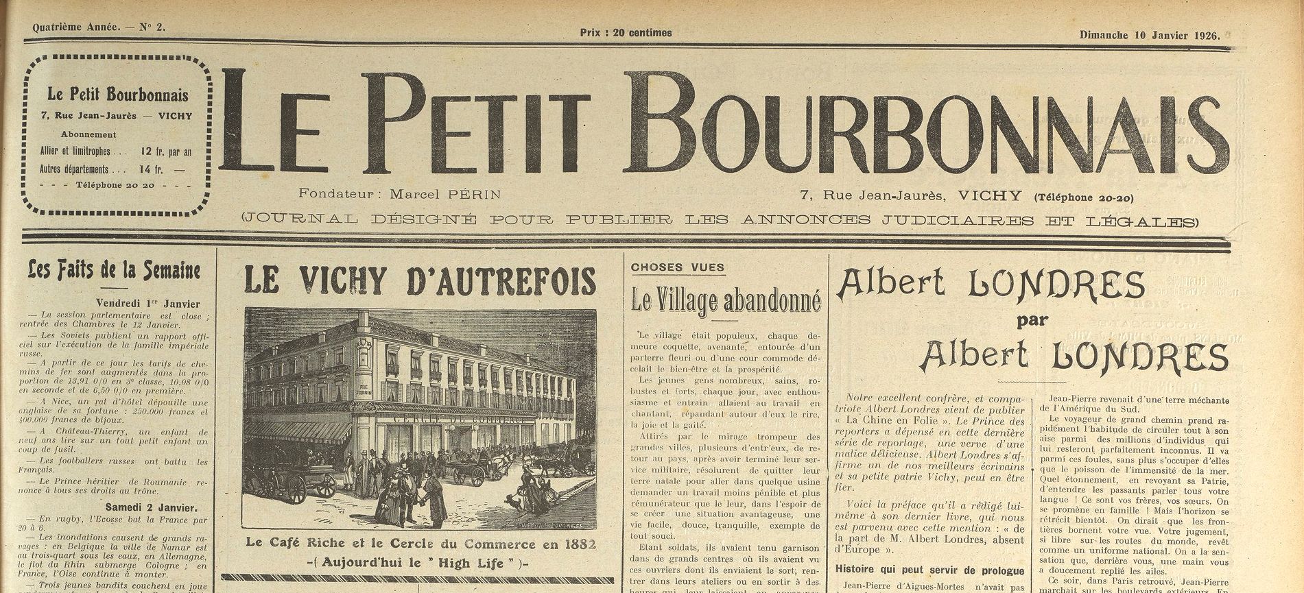 Le Fonds local et régional s’est progressivement constitué à partir de 1866, date officielle de la création de la bibliothèque municipale, mais a réellement pris corps en 1985, lors de la construction de la nouvelle médiathèque, rue Maréchal Lyautey. Il a été enrichi par plusieurs dépôts ou dons d’importantes bibliothèques d’érudits locaux, comme ceux de la Société d’Histoire et d’Archéologie de Vichy et des Environs, de l’ancien député et ministre de l’Instruction publique, Lucien Lamoureux, ou de la famille Wallon-Lasteyras, imprimeurs à Vichy depuis 1864. La collection de cette dernière, qui comprend environ 250 volumes reliés de journaux locaux des années 1870 à 1930, a récemment été numérisée et mise en ligne sur Gallica par la Bibliothèque nationale de France.
